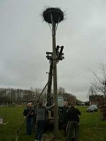 Am heutigen Nachmittag wurde das erste neue Storchennest auf der Wiese vor dem Cafe Waldsee in Blickrichtung Kirche aufgestellt. Es ist von der Wertherbrucher Straße aus gut sichtbar. Unser Projektleiter Johannes Verbücheln und der erfahrene Storchennestbauer Heinz Weidemann stellten mit einigen fleißigen Helfern die Brutstätte auf. Nun sollen die weiteren Storchennester zeitnah angefertigt werden.