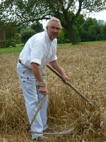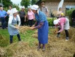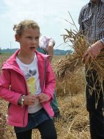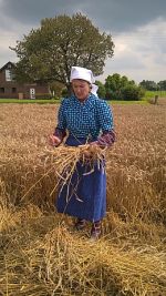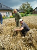 Ein besonderer Dank geht an die Familie Heesen, die für die Ernteaktion das Weizenfeld in der Dorfmitte ebenso wie die Räumlichkeiten zum Binden der Krone zur Verfügung stellte.